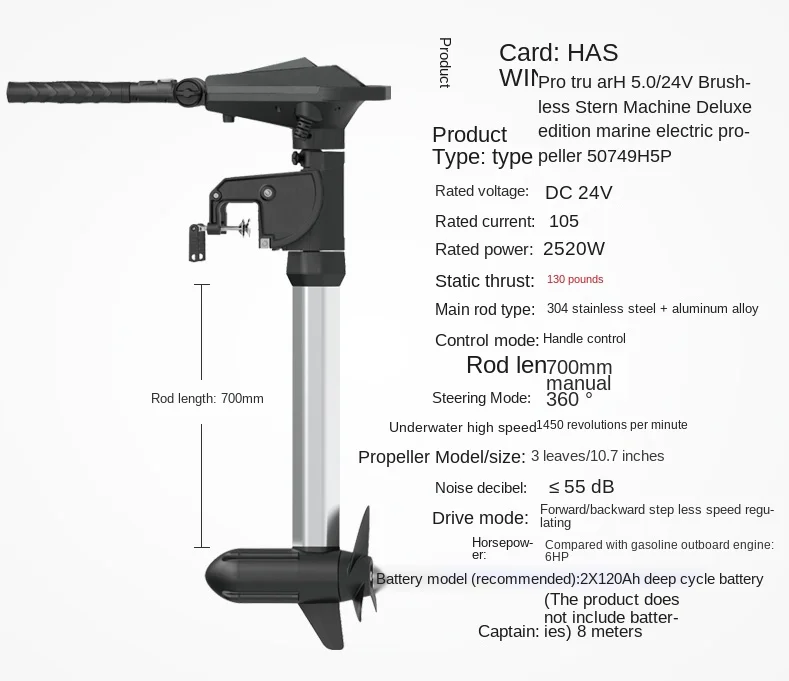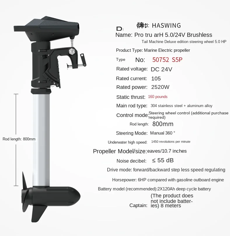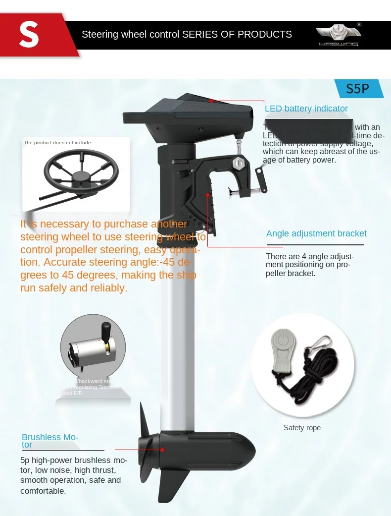 Propulsor Marino Eléctrico 5HP: Potencia y Control de Lujo con Motor Sin Escobillas y Volante
