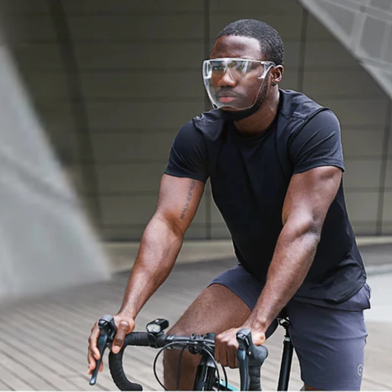 The appearance of the mask uses aerodynamic contours so that it can even be used as a bicycle wind deflector